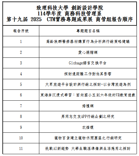 【商管系】【2025第十九屆大四成果展競賽】專題報告順序